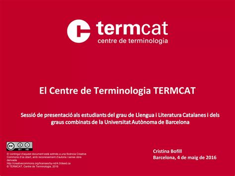 There are also some dictionaries that we host despite them not being part of our own termcat collection. Causa necessària font diccionaris terminològics del termcat àrea temàtica ciències de la salut, Termcat centre de terminologia. El cercaterm és el cercador terminològic del termcat, el centre de terminologia de la llengua catalana, creat el 1985 per la generalitat de catalunya i l’institut d’estudis catalans. Lt › terminologija › articleterminology for the catalan language 25 years of termcat.